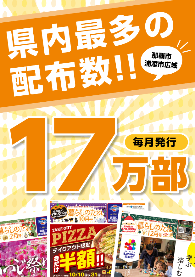 県内最多の配布数!!那覇市・浦添市広域の17万世帯以上にリーチ!!